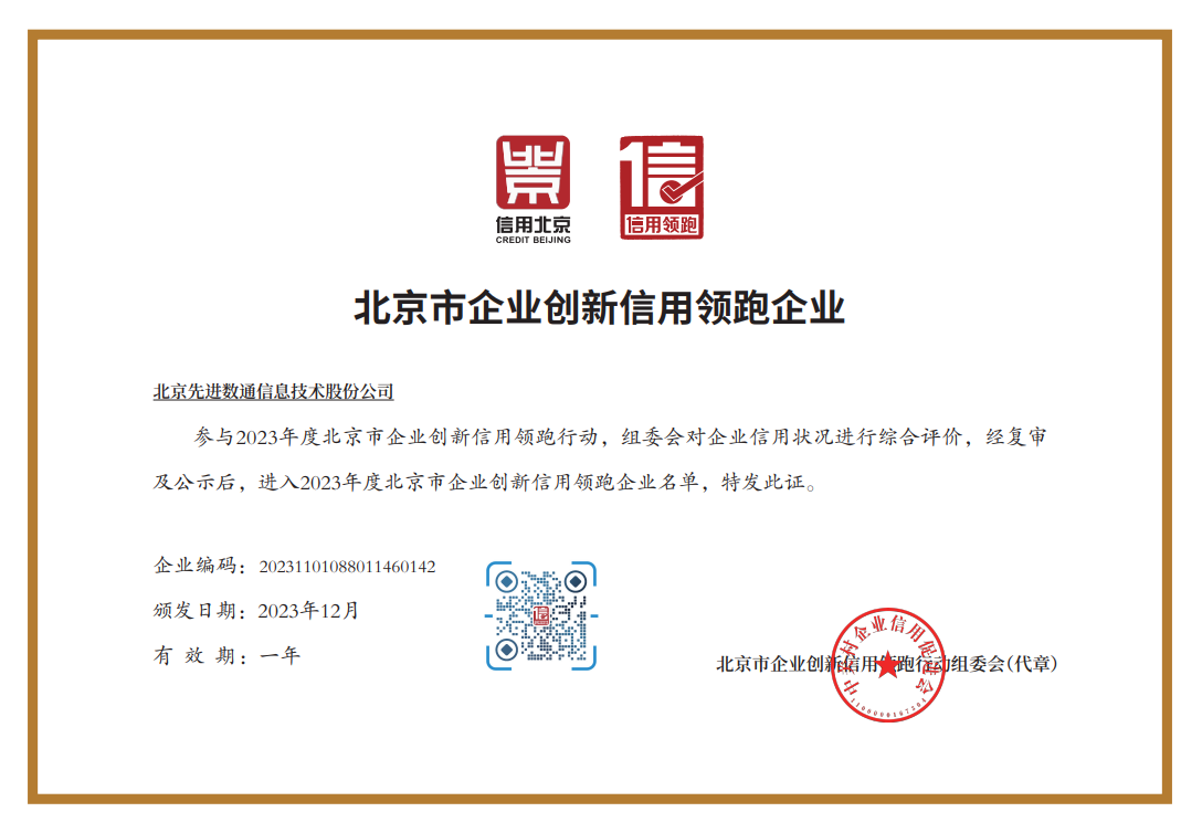 MG冰球突破官网和泛融科技获评2023年度北京市企业创新信用领跑企业